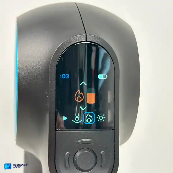 The LCD provides ample information for selecting the desired settings, while Bluetooth lets you connect to the Therabody App for customized routines.
